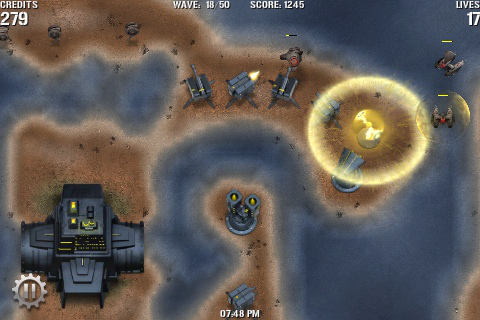 At the time we started with TriDefense there were no game toolkits and the iPhone was not that powerful, so we immediately understood that we had to build an engine and it would take some time. A couple of us were obsessed with Desktop Tower Defense at the time and there were no games like it on the recently launched AppStore, so we decided to take that basic mechanic and build upon it. Even if we suspected somebody should be working on something similar, we never saw Fieldrunners coming. At first we were devastated, but we kept pushing and in 2009 we released it. TriDefense gave us a lot of nice surprises, it won an award and was downloaded more than 700.000 times.Features